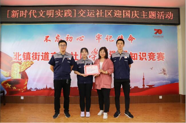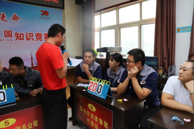 9月24日上午,濱州城建集團(tuán)參加了北鎮(zhèn)辦事處交運(yùn)社區(qū)舉辦的“不忘初心、牢記使命”慶祝新中國(guó)成立70周年學(xué)習(xí)強(qiáng)國(guó)知識(shí)競(jìng)賽。此次知識(shí)競(jìng)賽有8支代表隊(duì)參加,在競(jìng)賽中,參賽選手們聚精會(huì)神地聽題、信心百倍地答題,分工協(xié)作、沉著冷靜,認(rèn)真回答主持人的提問,既體現(xiàn)出個(gè)人魅力,又展現(xiàn)出了集體風(fēng)采。經(jīng)過激烈的個(gè)人賽、團(tuán)體賽、必答題、搶答題環(huán)節(jié),最終濱州城建集團(tuán)高路雨、任月月、陳延杰三名選手憑借良好的政治素質(zhì)和精神風(fēng)貌大比分勝出,獲得此次比賽的一等獎(jiǎng)。