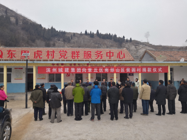 1月30日上午,濱州城建集團向章丘區南部山區部分貧困村愛心捐款活動在章丘區垛莊鎮東里虎村黨群服務中心舉行。濟南市章丘區民政局黨委書記、局長張慶峰、城建集團總工程師王志江等相關領導出席活動。