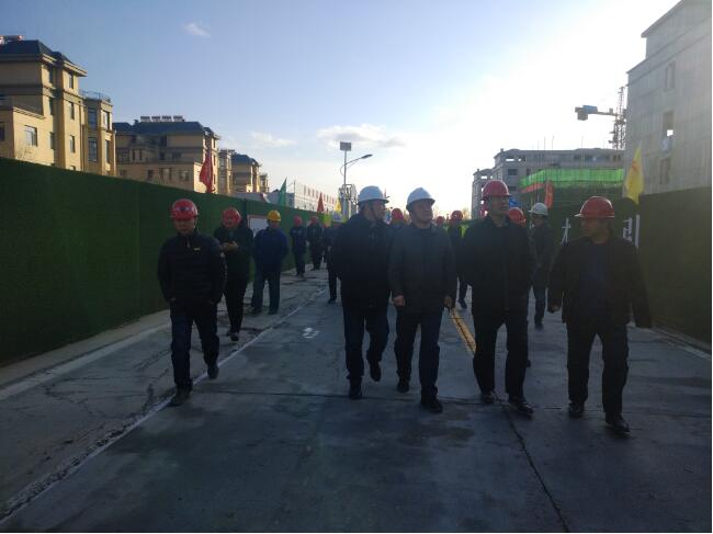 2019年11月27日下午,山東省建筑施工安全文明標準化工地檢查組一行對城建集團承建的新語華庭項目從機械設備、腳手架、模板支撐、臨時用電、安全管理資料等方面進行了檢查驗收。城建集團副總經理袁文義、馬興永等領導陪同檢查。